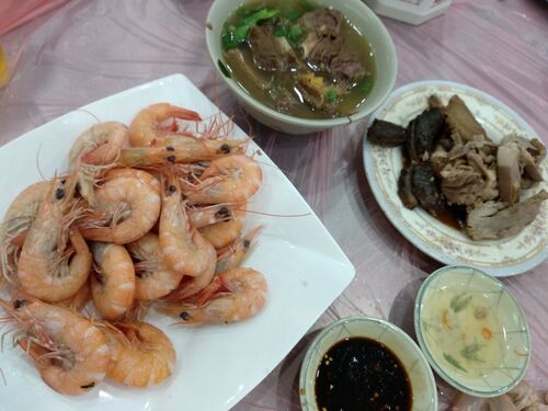 毎度毎度のAp Lei Chau大街街市。 夕方までの時間帯に行く場合には、店舗で魚介類を揃えていないので 海鮮食材はG/F(地上階)の魚市場で購入、 持ち込みをして調理してもらう。 プリプリ茹で海老。 茹でバイ貝。良いおつまみ。 バイ貝類は日本では結構お高…