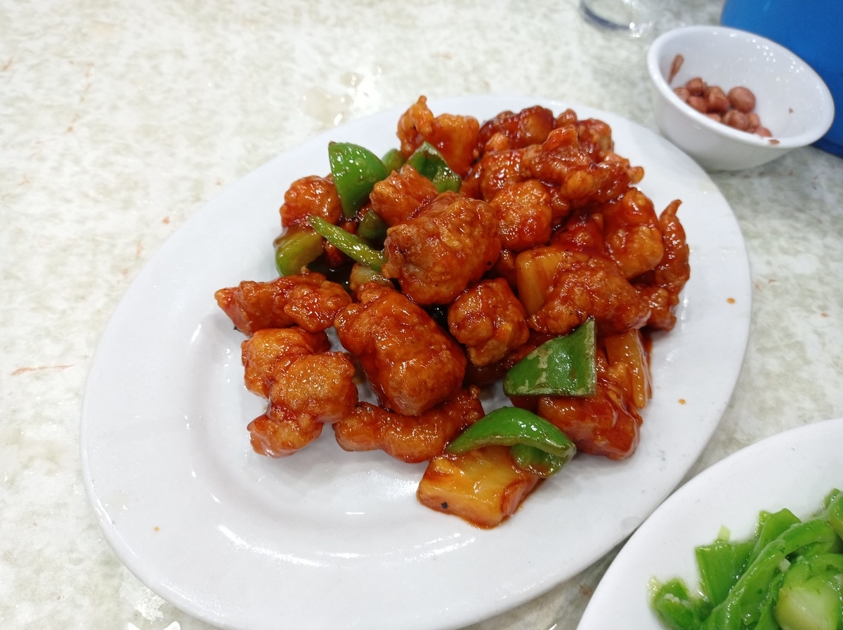 そうだ、このお店の酢豚はお肉がやたら多くてピーマンが少なかったんだ、ということを思い出す。香港、ピーマンお高いからね。
