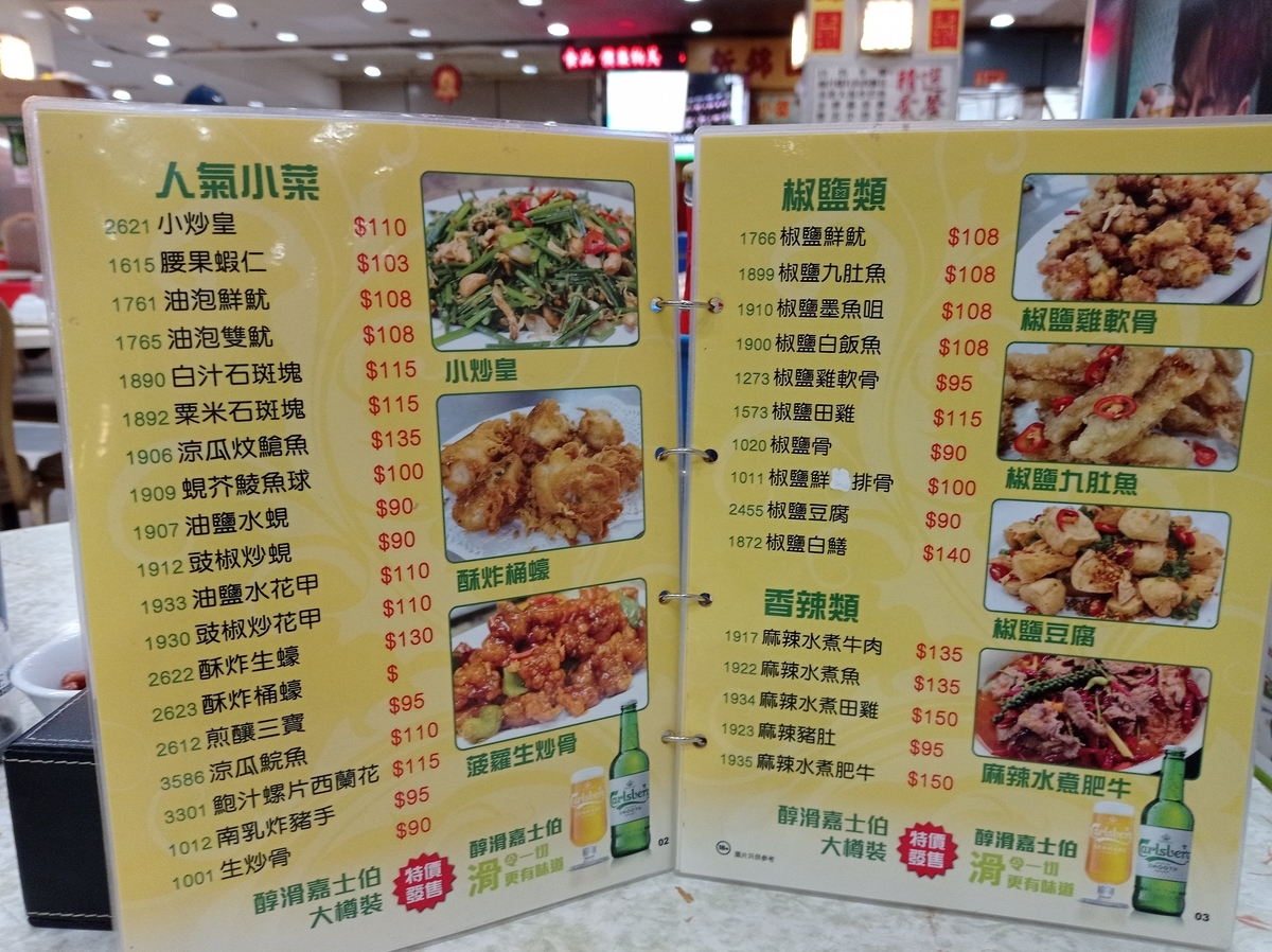 この日のお勘定、ビール4本と写真の料理でHK$641-